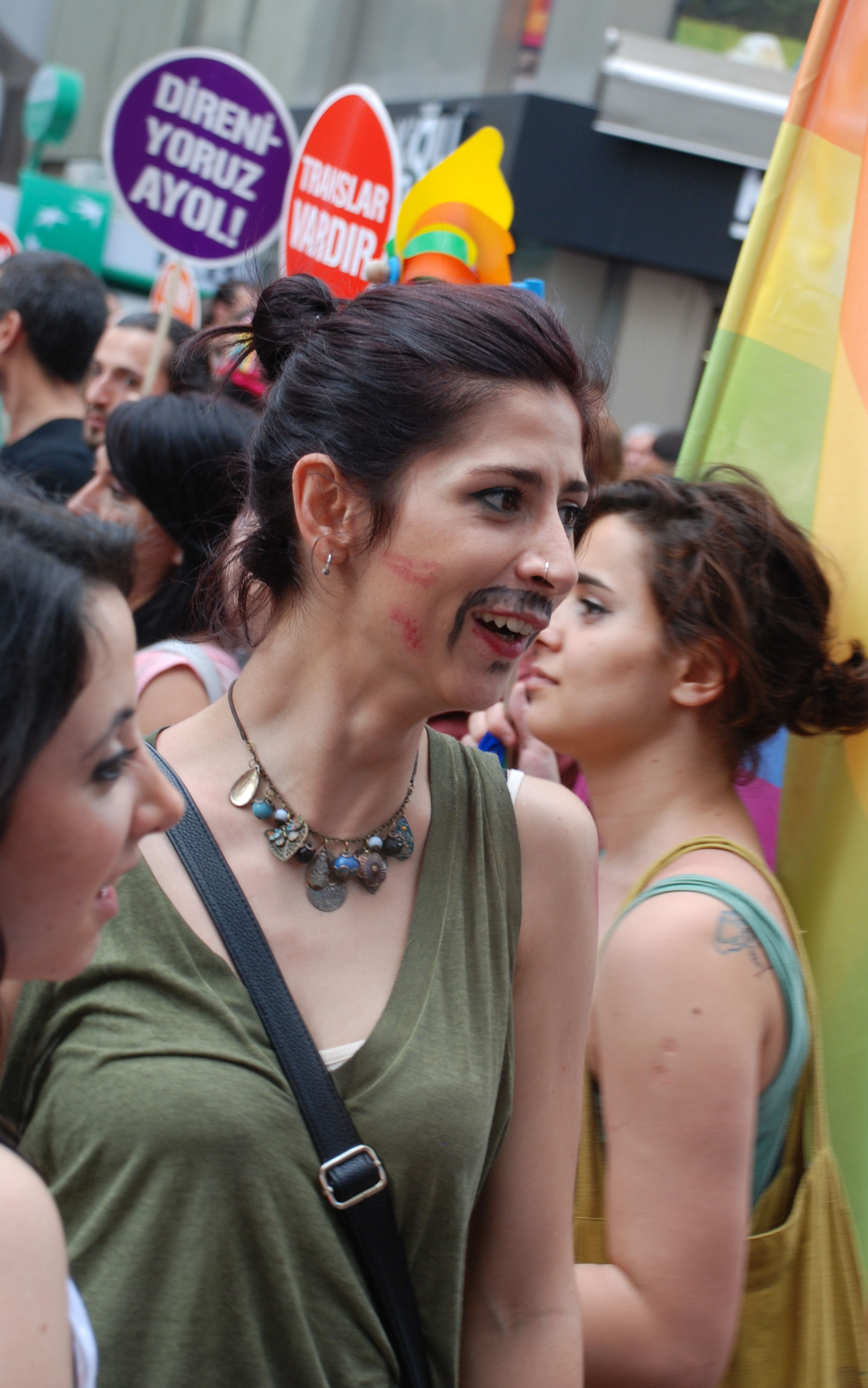 Gene yürüyüşte enstantanelerden biri de son derece klişe olmakla beraber bir erkeğin yanındaki arkadaşına bu lezbiyenler arasında ne kadar güzel kızlar var lafıydı.
