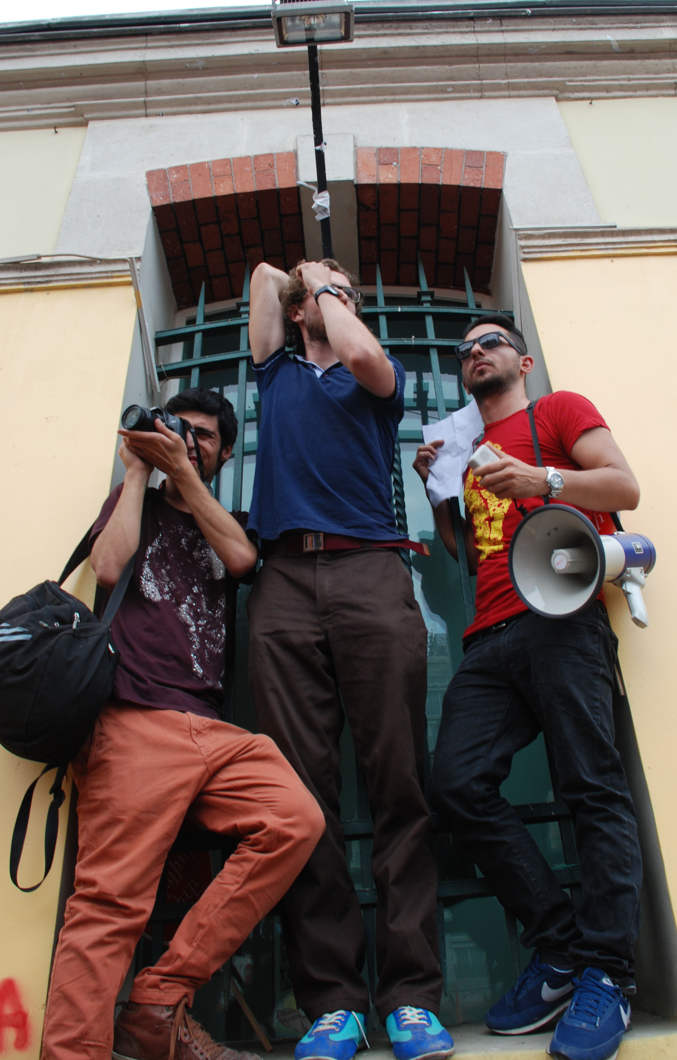 Fransız konsolosluğu penceresi yürüyüşü taküp etmek için stratejik bir nokta