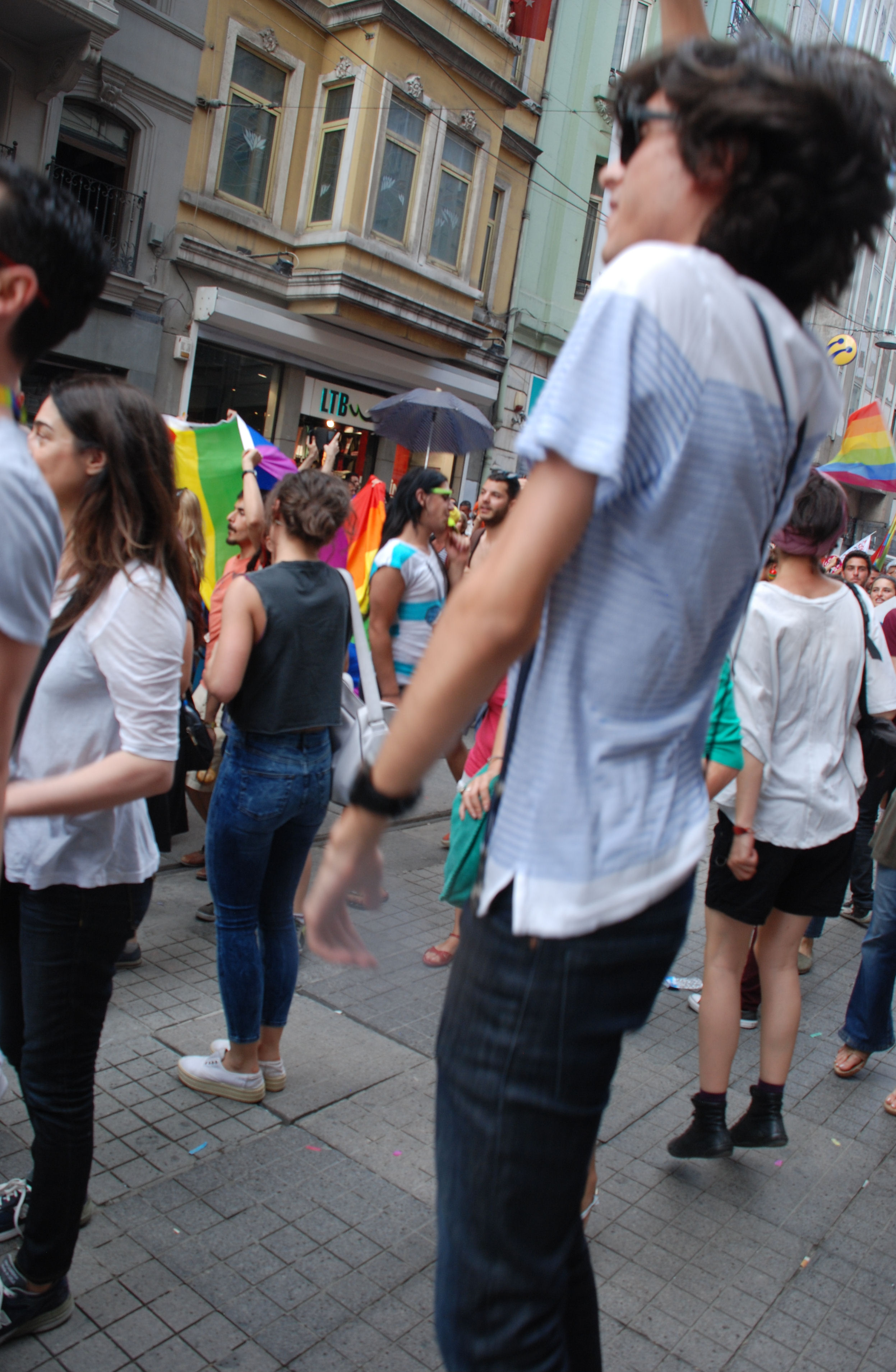 Herkes sempatik, herkes kibar, herkes hoşgörülüydü. Herkesin yüzünde bir gülümseme vardı. İzdiham olmasına rağmen itiş kakış yoktu. Aralardan geçip daha hızlı ilerlemek isteyenler pardon diyerek kimseyi itelemeden diğer insanların arasından geçiyordu. Cinsel tercihini kıyafetleriyle ifade etmekten çekinmemiş olan bir abinin söyledikleri ayrımcılık içermiyordu sadece çok komikti, yanındaki arkadaşlarını epey güldürdü.
