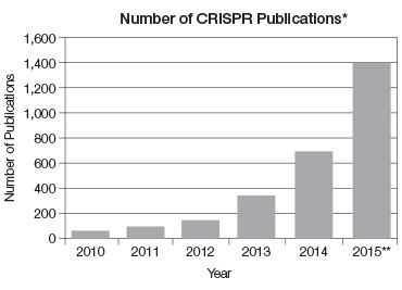 PubMed?den aldığımız bu gradikte yılda CRISPR üzerine yapılan yayınlama sayısında 2012?den bu yana inanılmaz bir artış olduğunu görebilirsiniz: