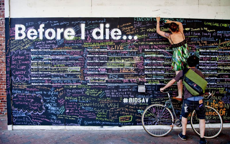 Candy Chang New Orleans?da yaşayan bir sanatçıdır. Onun yaşamını baştan başa değiştiren şey ise çok sevdiği bir yakınını kaybetmesiyle ortaya çıkar. Acı kaybı üzerine gerçekte kendisi için neyin daha önemli olduğunu anlar ve değerini daha iyi kavrar. Ama bu düşünceyi günlük hayatın hızlı akışında akılda tutmak kolay olmadığı için bu düşüncesini hem kendisine hatırlatmak hem de komşularıyla paylaşmak için alışılmadık bir yola başvurur. Terkedilmiş bir evi koca bir yazı tahtasına çevirir ve şu sözleri tebeşirle komşularının tamamlaması için tahtaya yazar: ?Before I die, I want to________?(Ölmeden önce yapmak istediğim şey ?)